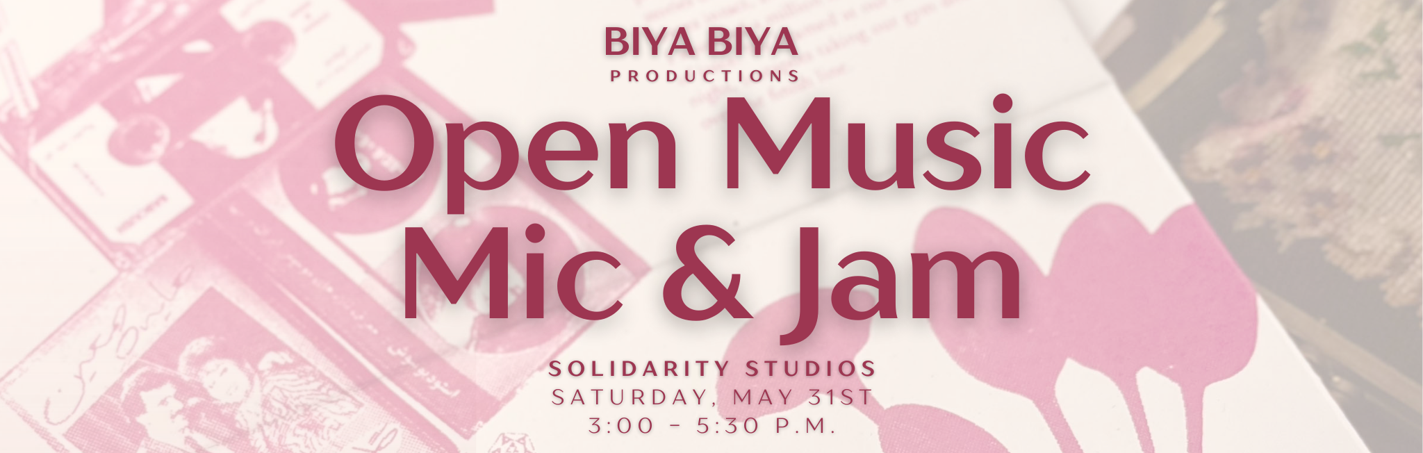 🌹 Join BIYA BIYA for an Open Music Mic & Jam! All are welcome to take space on the Solidarity Studios stage for their 5 minutes of fame. Perform something new or old in front of an intimate crowd and then join in a group jam led by local musician Pat Williams. Sign up to perform at the door!