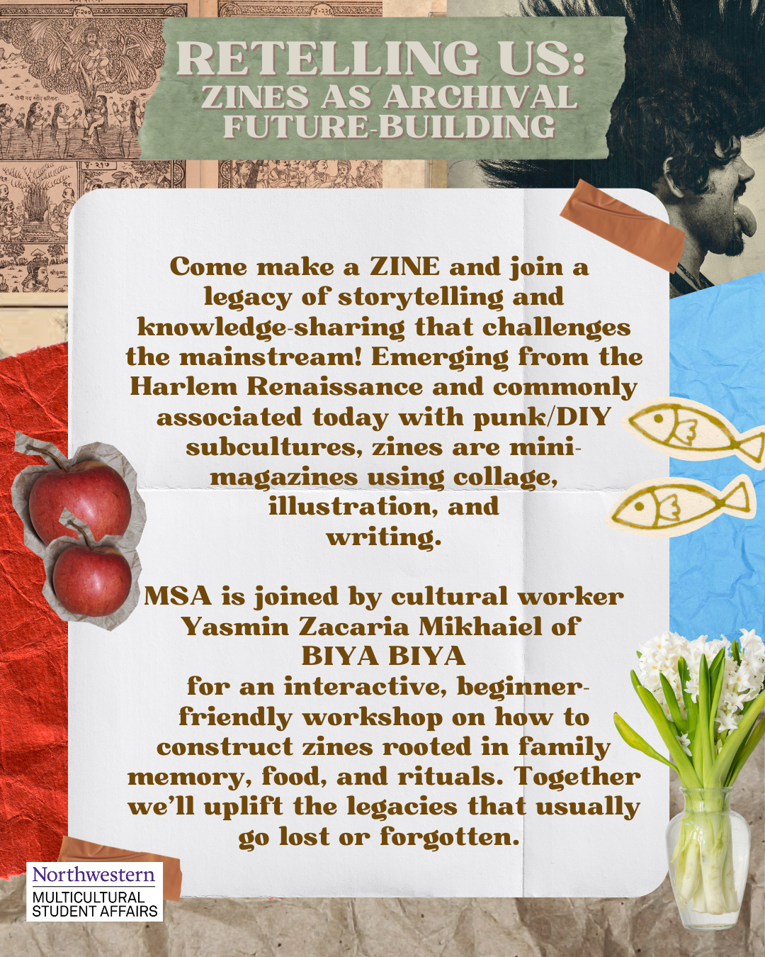 MSA is joined by cultural worker Yasmin Zacaria Mikhaiel of BIYA BIYA for an interactive, beginner-friendly workshop on how to construct zines rooted in family memory, food, and rituals. Together we’ll uplift the legacies that usually go lost or forgotten.