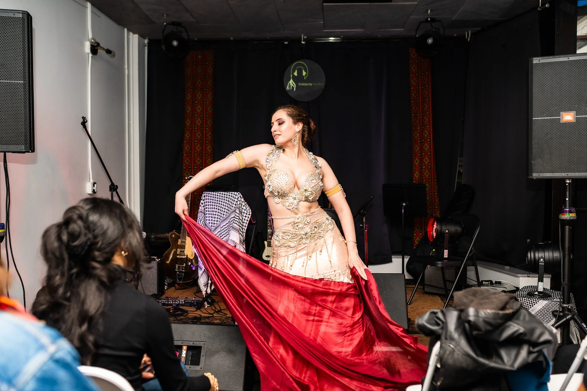 Yasmeen is Arab-Hispanic-American and grew up loving raqs sharqi, or belly dance. After finding Phaedra Darwish's classes and deciding to study raqs sharqi formally in 2021, she quickly became dedicated to honoring this art and professionally reclaiming SWANA dance. She values joy and authenticity and hopes to bring that to every performance.